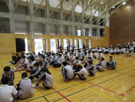 明日はいよいよ3年ぶりの中高合同の体育祭です。 体育祭では、全校が6つの色別の縦割りの組に分かれて競います。 今までなかなかコロナ禍で中高が一緒に体育祭活動をすることができなかったのですが、今日組ごとの顔合わせが行われました。 高校生が中心となって、リレーの順番を決めたり、種目の練習をしたりしました。 明日は天気が心配ですが、楽しい体育祭となることを期待しています。