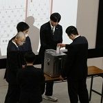 生徒会長1名、2年生の副会長1名、1年生の副会長1名の定員に対して、定員数の立候補だったため、信任投票が行われました。