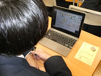 選挙についての説明の後、模擬選挙を行い、実際の選挙と同じように投票を体験しました。