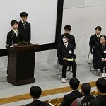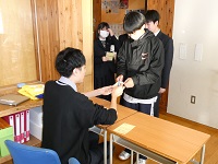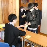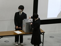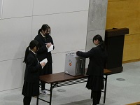 生徒会長1名、2年生の副会長1名、1年生の副会長1名の定員に対して、定員数の立候補だったため、信任投票が行われました。