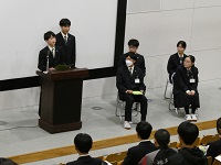 7時間目、次の生徒会役員を決める、生徒会役員選挙立会演説会が行われました。