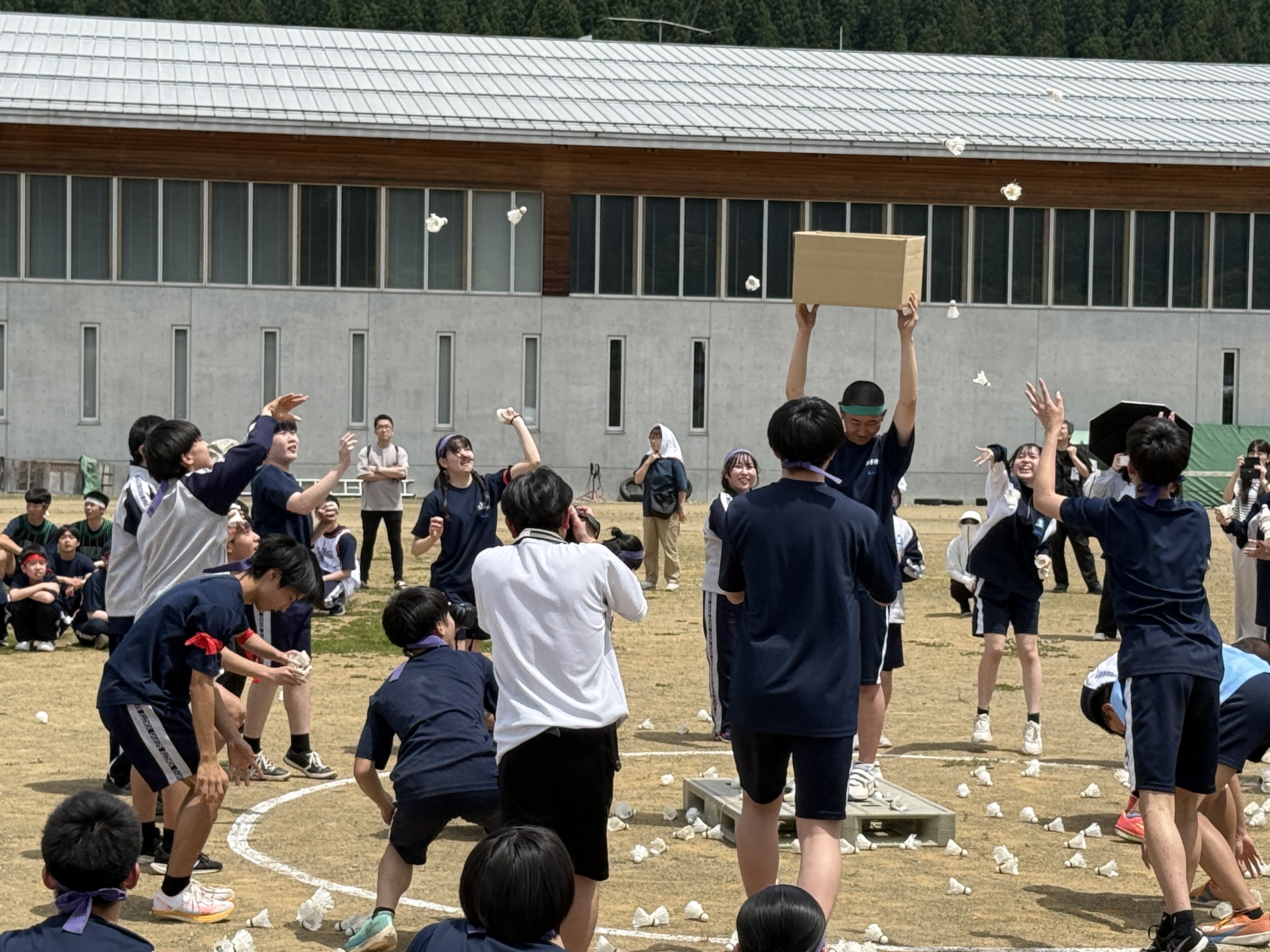 青空が澄み渡る快晴の中、中高合同の体育祭が行われました。 全校が6色に分かれて、優勝目指して頑張りました。 順位がコロコロ変わる接戦でしたが、最後は赤組(中1・高11・13)が優勝しました。 特に、”清陵レスキュー”では、高校生が中学生を騎馬戦のように乗っけて走る箇所があり、清陵学院ならではの種目です。 他の種目でも、中学生と高校生が応援し合っている、微笑ましい光景をたくさん目にしました。 暑い中、たくさんのご声援ありがとうございました。